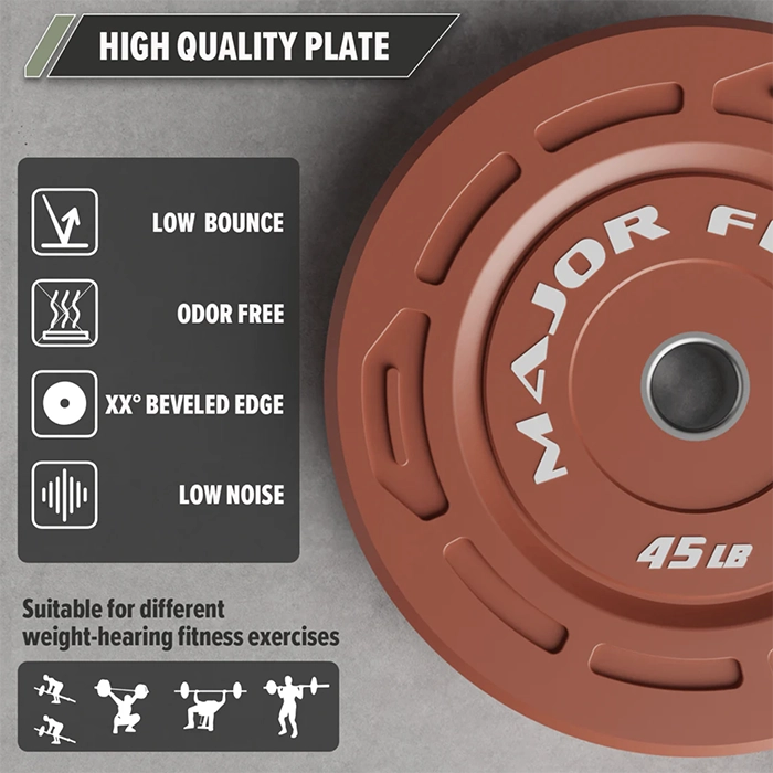 Low-Bounce Rubber Construction: Crafted from high-density rubber that absorbs shock and minimizes rebound, protecting your barbell, flooring, and increasing overall safety during drops.