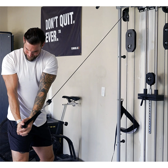 • Versatile Weight Ratios: Adapt your resistance on the fly. Use a single pulley for a 1:2 ratio—perfect for high-speed functional movements and longer cable travel—or switch to double pulleys for a 1:1 ratio to tackle heavy, direct lifts with the full 225 lb stack.