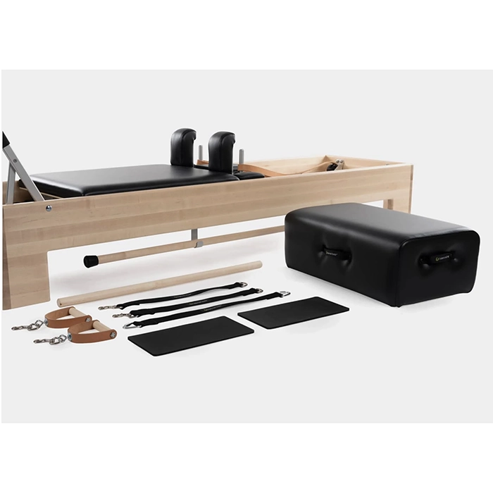 Developed in collaboration with industry experts, the CenterLine Pilates Reformer captures the soul of original Pilates measurements. With leather straps, wood handles, and a compact maple frame, it offers the precise feel required for classical Pilates techniques.