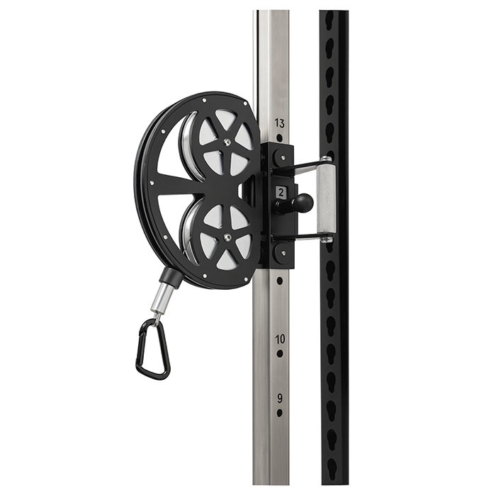 A: Yes, the pulley assembly has 16 different height adjustment settings on a 2×2 rail, providing extensive versatility.