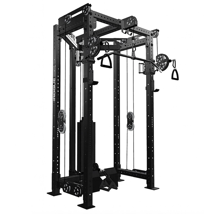 - Half Rack/Functional Trainer/Lat Pulldown/Low Row in One: A comprehensive, all-in-one unit that serves as a fully functional half rack, a versatile 2:1 functional trainer, and provides a 1:1 Lat pulldown/Low Row using a single weight source due to our patent-pending pulley configuration. We maximize the resistance of the weight stack, which means that only a single weight stack is needed, and if you opt for the plate load version, you only need to load one trolley and only need half the weight of competing products to achieve the same load.