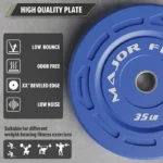 Elevate your strength training with the Major Fitness 35lb Color Grip Bumper Plates, the definitive choice for athletes who demand control and durability. These 35lb plates are meticulously crafted to handle the rigors of Olympic-style drops while protecting both your equipment and your floor. Unlike standard smooth-sided plates, our unique design features integrated grip cutouts and textured edges, making transitions between sets faster and safer. Whether you are hitting a new deadlift PR or practicing overhead cleans, these vibrantly colored plates provide the stable, predictable performance required for elite training.