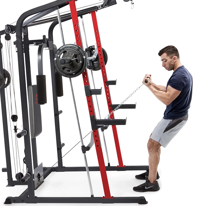 Upgrade your home fitness experience with the Marcy All-in-One Smith Machine Home Gym. The MD-7492 is a powerhouse of versatility, designed to provide a full commercial gym circuit in the safety of your own home. Constructed from industrial-strength 14-gauge steel and finished with a resilient powder coating, this cage is built for longevity and heavy use. Whether you are performing guided Smith bar presses or high-intensity cable crossovers, the precision-engineered chrome guide rods and 2,000-pound tensile-strength aircraft cables ensure a smooth, silent, and professional feel during every repetition.