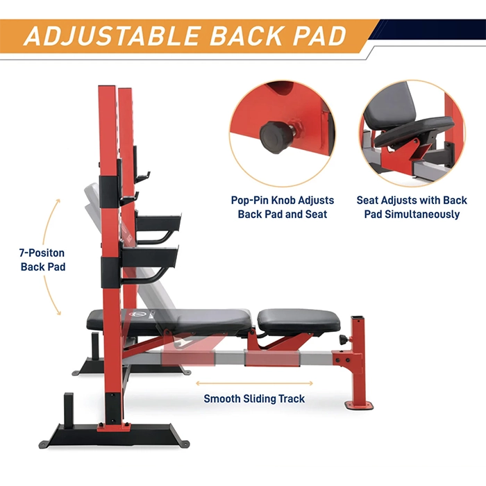 The Marcy Olympic Weight Bench MWB-7096 is a heavy-duty strength station engineered for safety and versatility. Featuring a unique slide-track backrest adjustment, 21 adjustable bar catch heights, and a massive 600 lb weight capacity, this bench is compatible with both standard and Olympic barbells for a professional home gym experience.