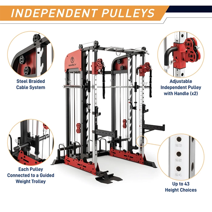 Bring the full power of a commercial fitness center into your home with the Marcy Pro Deluxe Smith Cage. The SM-7553 is an industrial-strength training headquarters designed for both beginners and elite athletes. This system redefines the “all-in-one” concept by integrating a smooth Smith machine, a functional power rack, and 40-position adjustable cable crossovers. Whether you are performing heavy compound lifts or high-intensity athletic drills, this cage provides the stability, safety, and versatility required to shatter your personal records.