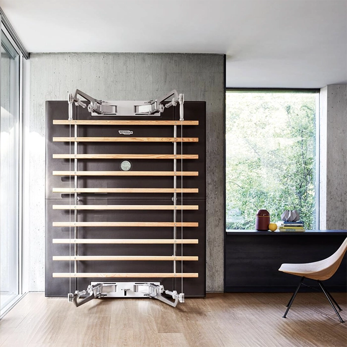 Space-Saving Refinement: When not in use, the unit is exceptionally compact, extending only 45 cm (18 inches) from the wall. This allows it to blend seamlessly into luxury bedrooms, private offices, or dedicated home gyms.
