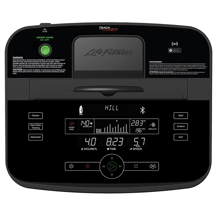 The advanced Track Connect 2.0 console with enhanced Bluetooth allows you to bring all your workout data into one place with seamless integration with your favorite devices. This includes your Apple Watch or Samsung Galaxy Watch, as well as Apple or Android smartphones. You can sync directly with Strava using North Pole Engineering’s GymTrakr app, and with Apple Health or Fitbit by enabling proximity login on the Life Fitness Connect app. Alternatively, connect and follow along with interactive apps like Zwift, Kinomaps, Wahoo SYSTM, and Rouvy AR for an engaging virtual workout experience that transforms your run. The upper Entertainment Zone, with its integrated smartphone/tablet compression rack, is positioned at eye level for easy viewing as you follow along with your preferred fitness app or stream the latest episode of your favorite show. Meanwhile, the lower Workout Zone is designed for easy setup and in-workout control of your run.